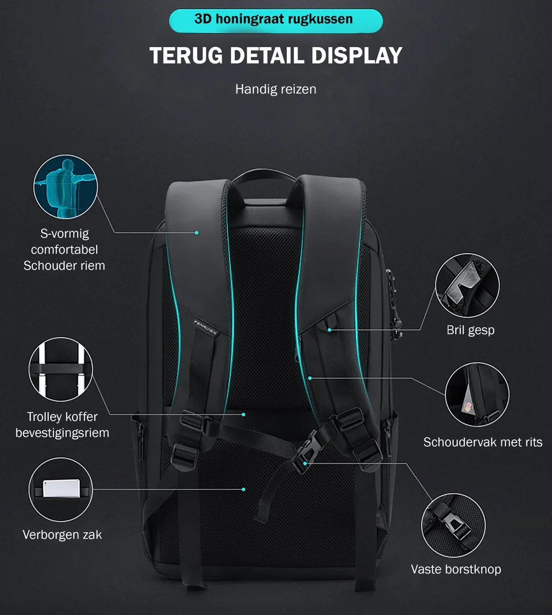 Brandie® – Rugzak – Geschikt Voor 17.3 Inch Laptop – Reistas – Schoudertas – Waterdichte – USB Opladen – Hoge Capaciteit – Anti Diefstal – Normaal Zwart – Voor Heren Tas – Grootte 14*32*48cm – Gewicht 1.3 Kg