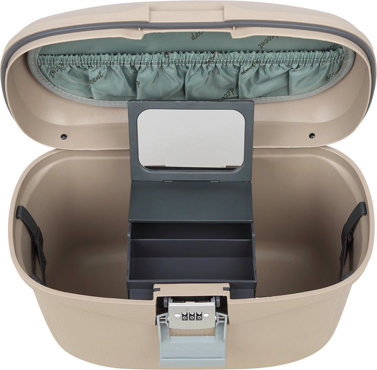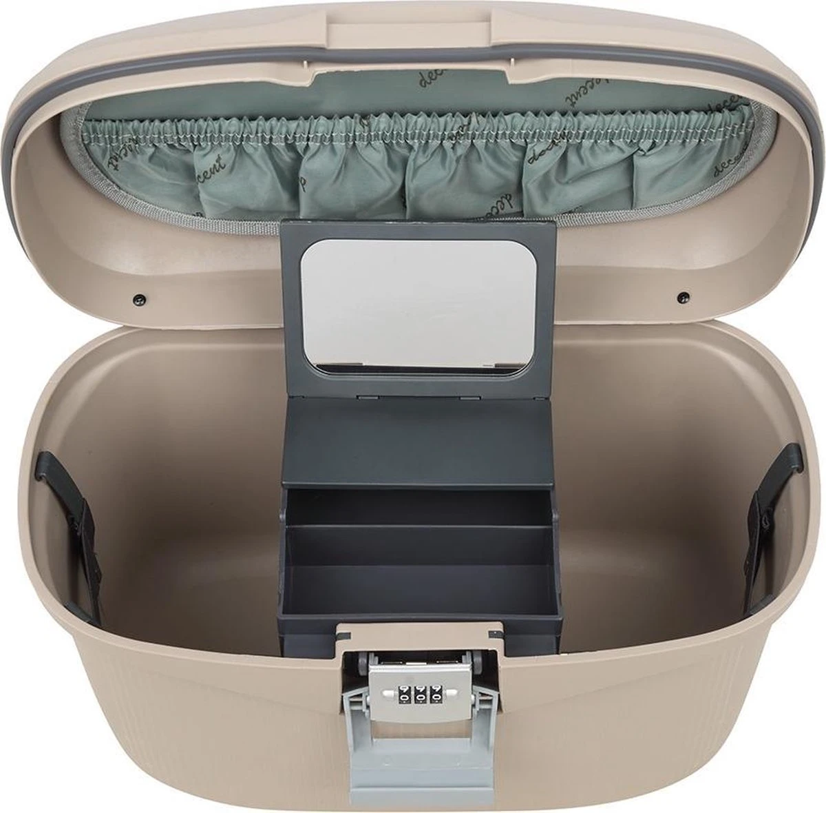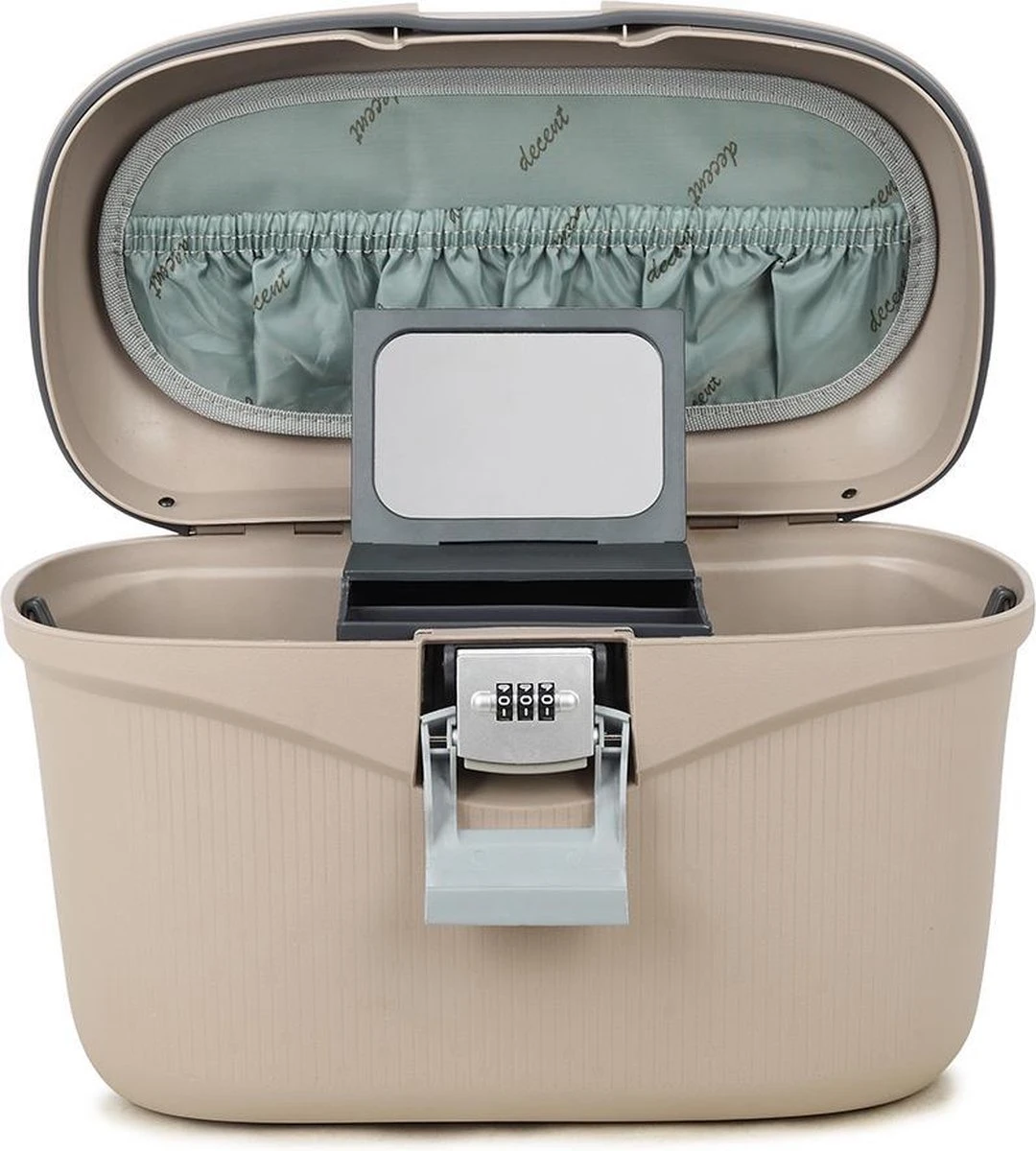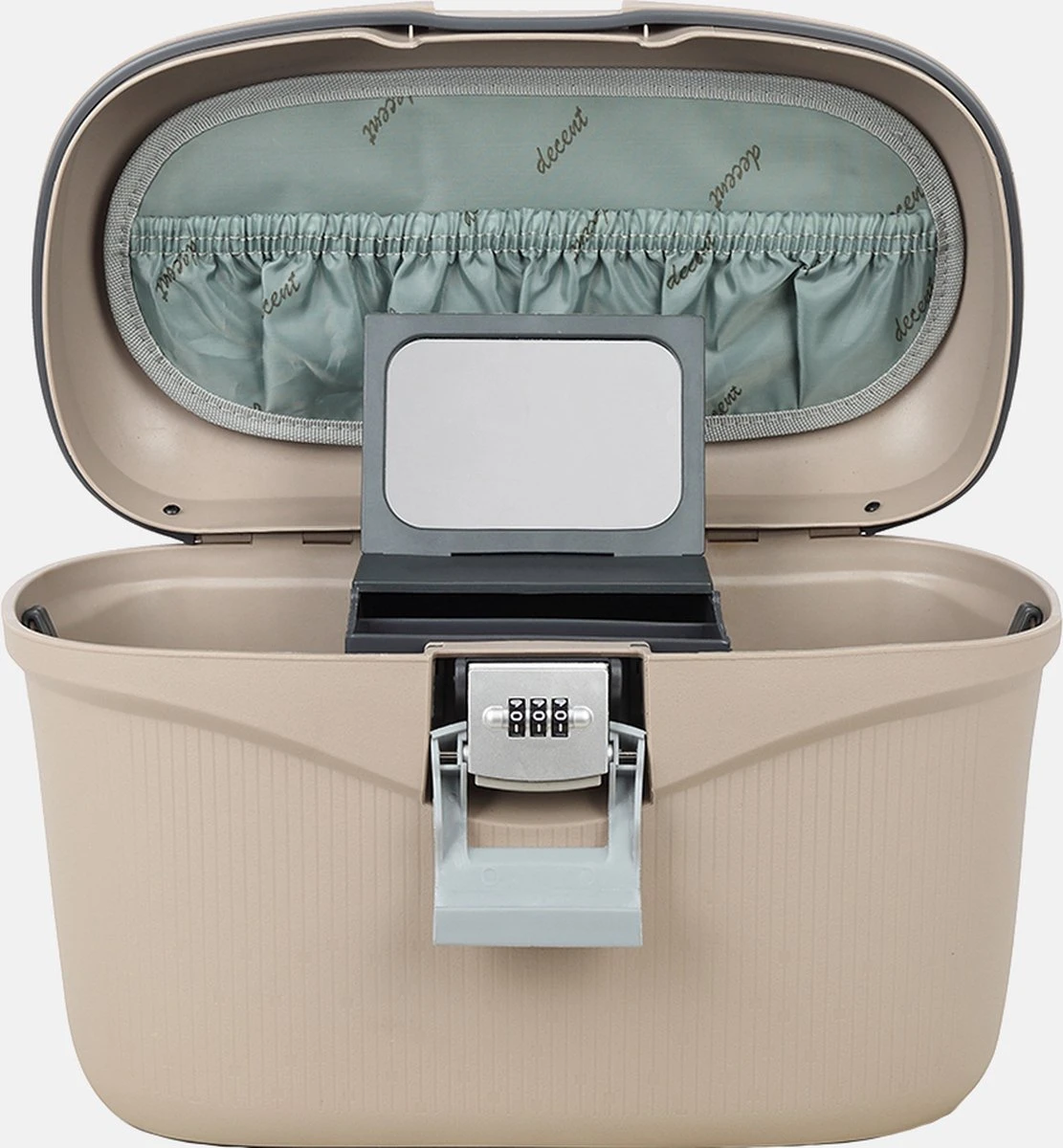 Iedere reiziger heeft wel een goeie beautycase nodig. Met de Sportivo beautycase van Decent in de kleur beige weet je dat je in ieder geval goed zit! Aan ruimte in ieder geval geen gebrek want je kan letterlijk al je toiletspullen hierin kwijt. Het fijne aan deze beautycase is dat het een hard case is waardoor je ervan verzekerd bent dat je spullen onbeschadigd blijven en dat is natuurlijk heel belangrijk met toiletspullen. Mocht het in het ergste geval gaan lekken, ben je er in ieder geval zeker van dat het niet in je koffer terecht komt en kun je het makkelijk beperken tot je beautycase. Ook heel fijn voor de bagagecheck want je kan nu al je vloeistoffen gemakkelijk in één keer uit je koffer halen. Het cijferslot geeft je extra zekerheid en dat is natuurlijk altijd fijn tijdens het reizen. De beautycase is niet alleen handig voor het reizen, maar ook ideaal voor thuis om al beautyproducten in op te bergen voor op je kaptafel.