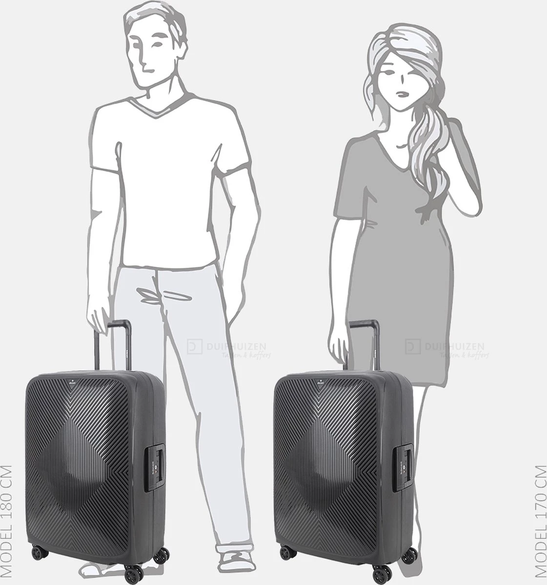 Deze koffer is gemaakt van het materiaal polypropyleen. Polypropyleen is één van de sterkste materialen. Een koffer van dit materiaal kan daarom prima tegen een flinke stoot. Een polypropyleen koffer is een goed alternatief voor reizigers die curv, aluminium of polycarbonaat te duur vinden.