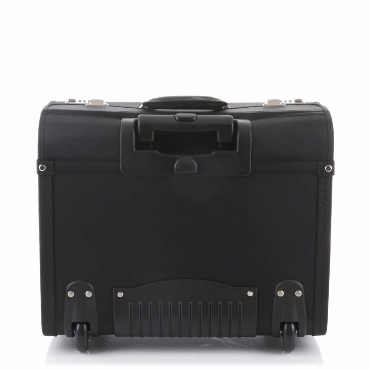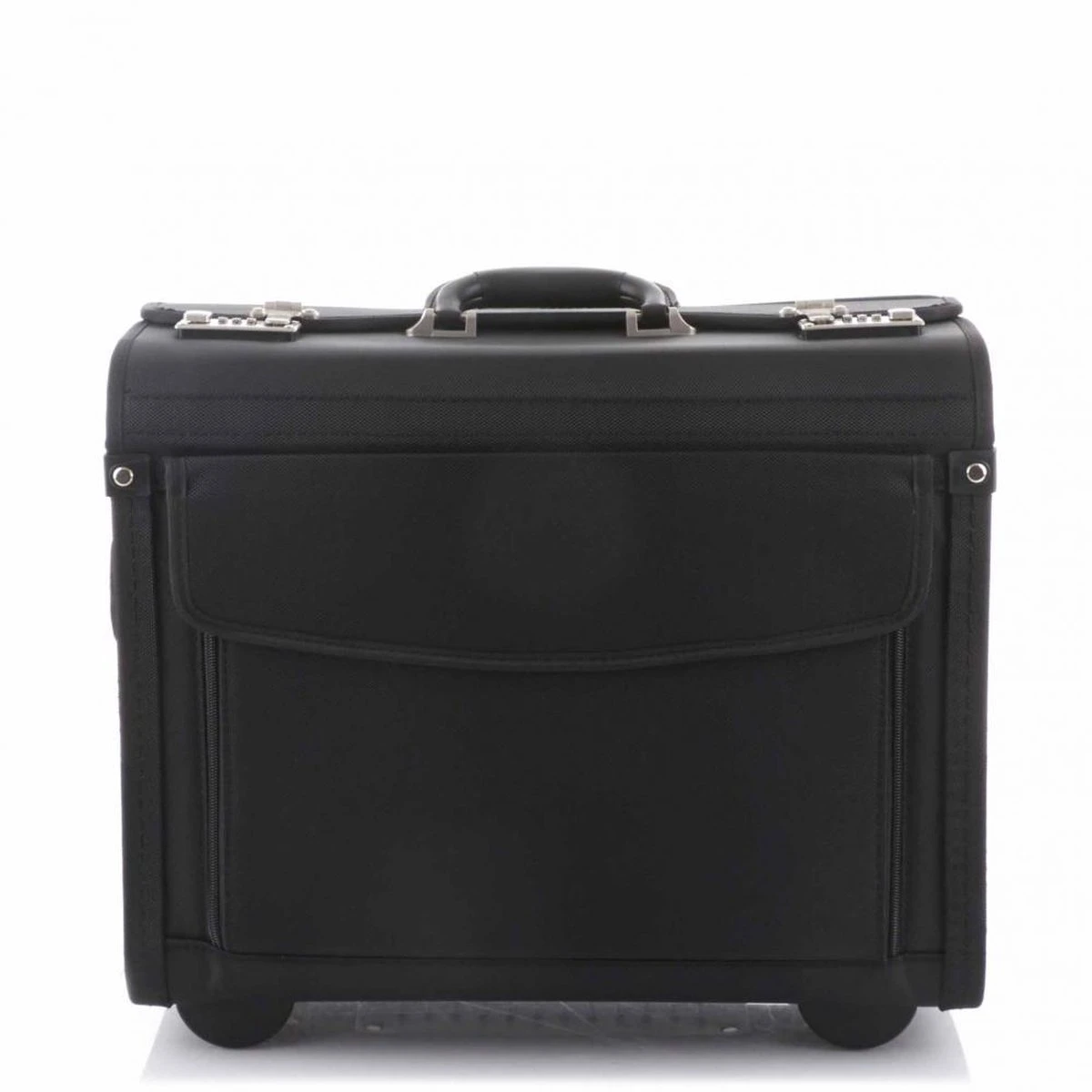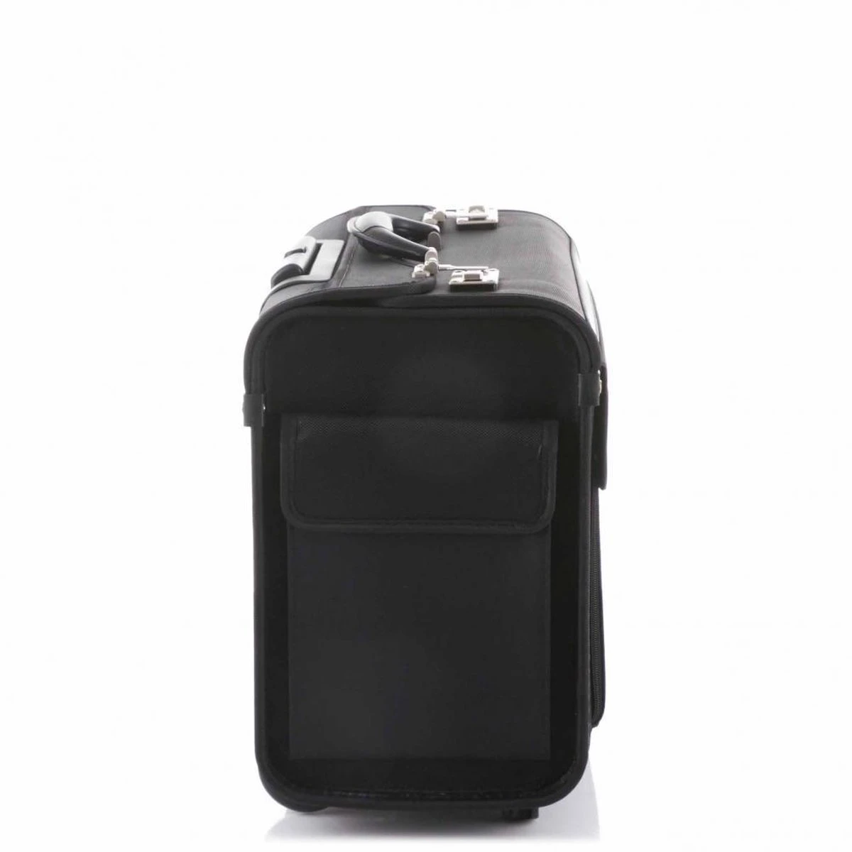 Elegante pilotenkoffer van Dermata gemaakt van hoogwaardig nylon. De Dermata 1340NY pilotenkoffer beschikt over een zeer ruim hoofdcompartiment. In dit vak is er ruimte voor meerdere mappen en een 15 inch laptopvak, uitneembaar. Naast een ruim hoofdvak heeft de koffer een voorvak met tussenschotten van A4-formaat en twee zijvakken. De zwarte pilotenkoffer is af te sluiten door twee kleppen aan de bovenzijde die vergrendeld kunnen worden door middel van twee cijfersloten. Aan de binnenkant van de kleppen zitten meerdere handige vakken voor onder andere reisdocumenten, pennen en een telefoon. Met geïntegreerd trolley systeem en wielen aan de onderkant.
