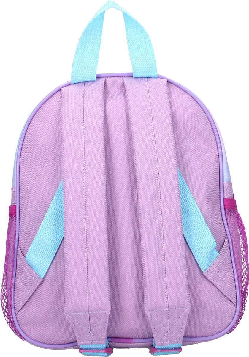 Frozen is een van de topfavorieten van jonge meisjes. Daarom is deze rugzak uit de ‘Magical Spirit’ een ideaal item om overal mee naar toe te nemen. Princes Elsa met haar lange blonde haren staat afgebeeld op het ruime voorvak van de tas. De lichtblauwe met paarse tas is voorzien van een ijskristallen print. De schouderbanden zijn verstelbaar en lichtblauw van kleur. Door middel van de ritssluiting is het grote hoofdvak en ruime voorvak eenvoudig te openen en sluiten. Zo kan jouw kind in stijl en met haar geliefde Disneyfiguur op pad.