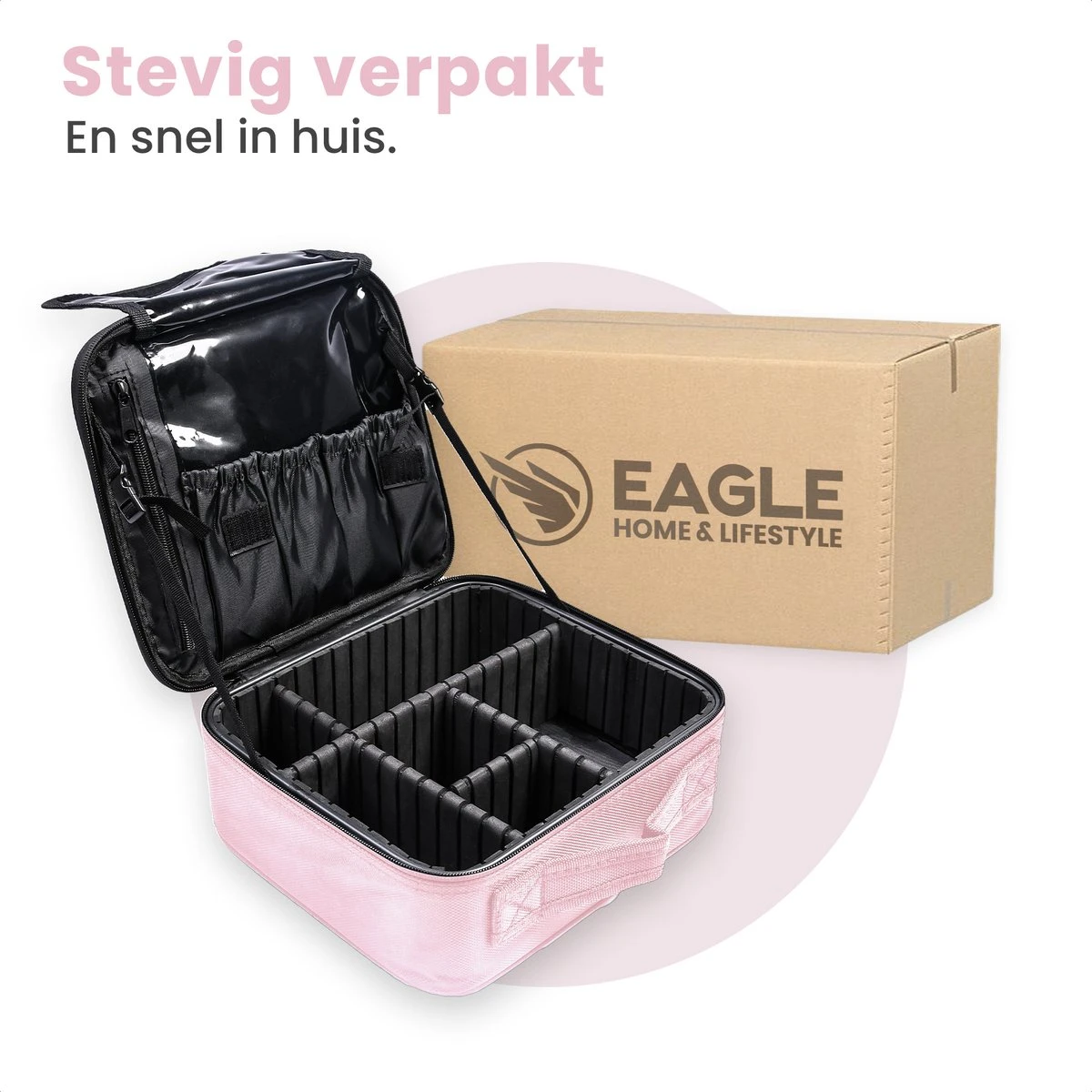 Doordat de make-up koffer van EAGLE gemaakt is van de beste en de meest stevige materialen, is de organizer zeer geschikt om mee te nemen op reis. Het slimme en stevige ontwerp zorgt voor een veilige omgeving van jouw spullen, zowel bij het gebruik thuis, als op reis.