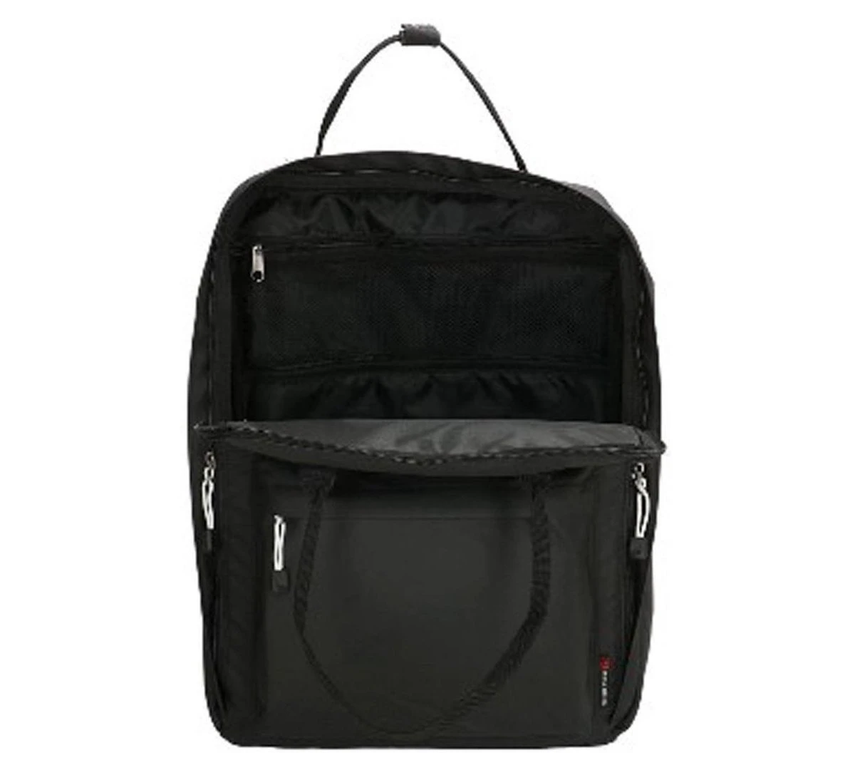 Specificaties: Vakken: een groot en een kleiner voorvak Laptopvak: laptopvak voor een laptop van maximaal 17 inchSchouderbanden: verstelbare schouderbanden Afmetingen: 31 x 11 x 43cm (Inhoud: 15 liter) Kleur: zwart Materiaal: 100% polyester