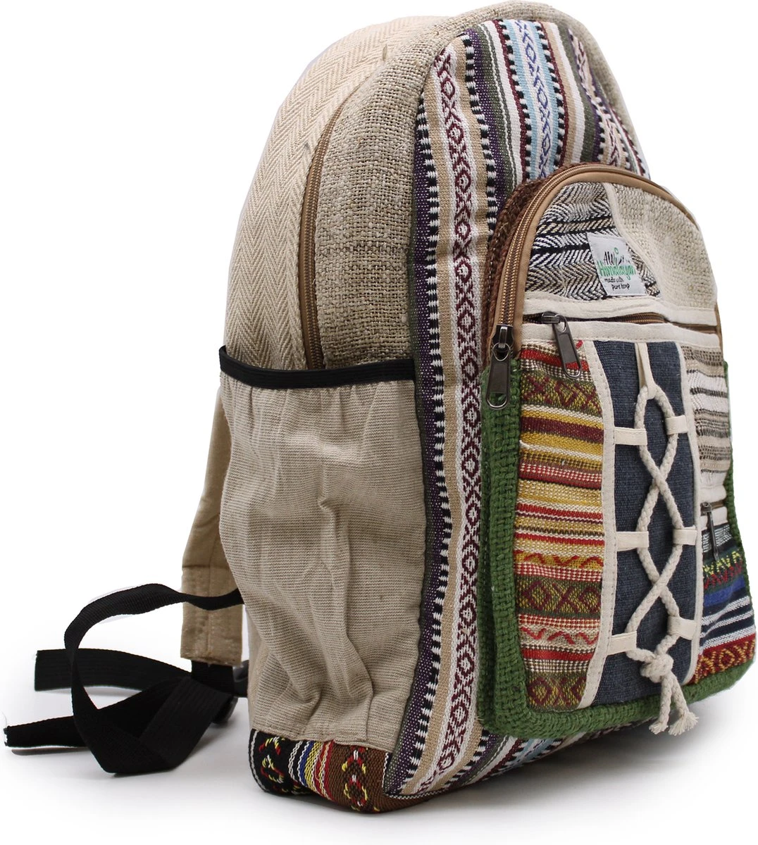 Gemaakt in Kathmandu, Nepalees met een mix van katoen en pure hennep, deze tassen zijn trendy, modieus, goed ontworpen en … nou ja .. helemaal geweldig. Wat is er niet om van te houden, praktisch en sterk met milieuvriendelijke hennep en katoen. Alle tassen hebben veel buidels en zakken.