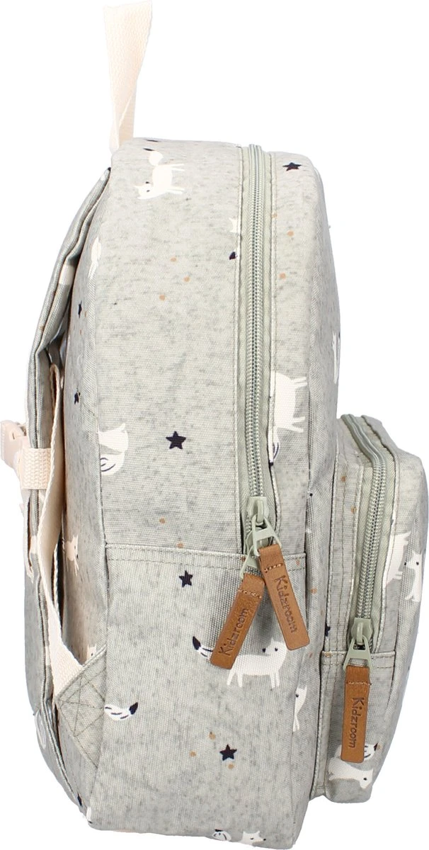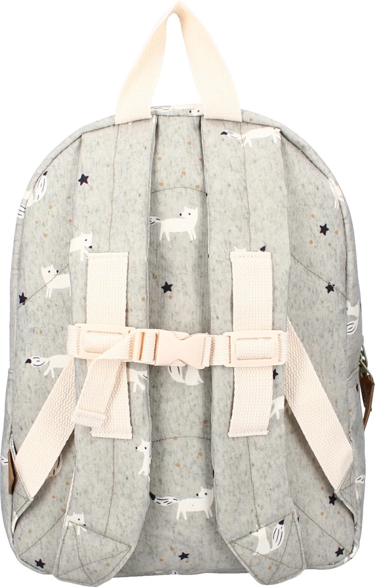 Is dit geen hippe rugzak? Je kind zal het overal mee naartoe willen nemen. De grijze rugzak uit de Hug Me collectie heeft een schattige vossen print. De rugzak heeft een praktisch voorvak met ritssluiting voor kleinere spullen die moeten worden meegenomen. Het grote hoofdvak heeft een praktische dubbele ritssluiting en biedt ruimte voor een broodtrommel of extra kleding. Praktisch als je kind de rugzak mee naar school neemt. De rugzak kan worden gedragen door de lus aan de bovenkant of op de rug met de verstelbare schouderbanden.