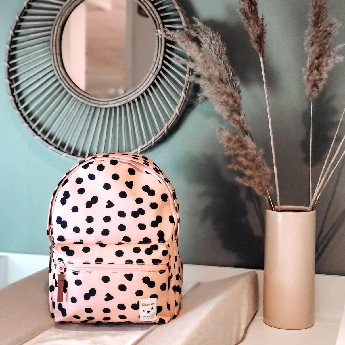 Deze roze, stoere Kidzroom rugzak is perfect voor mee naar het kinderdagverblijf, naar school of een dagje weg. De Lucky Me rugzak is gemaakt van kwalitatief polyester en heeft intern ruimte voor een broodbakje, drinkfles en je favoriete speelgoed. De rugtas sluit volledig middels een rits. De tas is voorzien van een zwarte stippen print waardoor je extra opvalt met deze tas op je rug. Super stylish voor de kleine fashionistas en bewuste ouders. Deze rugzakken zijn namelijk gemaakt van gerecyclede PET-flessen.