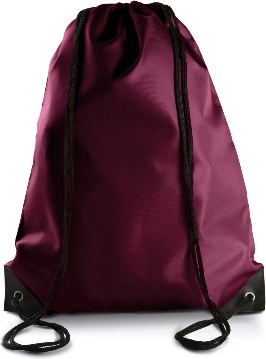 Sport gymtas/draagtas in kleur bordeaux rood met handig rijgkoord 34 x 44 cm van polyester en verstevigde hoeken.