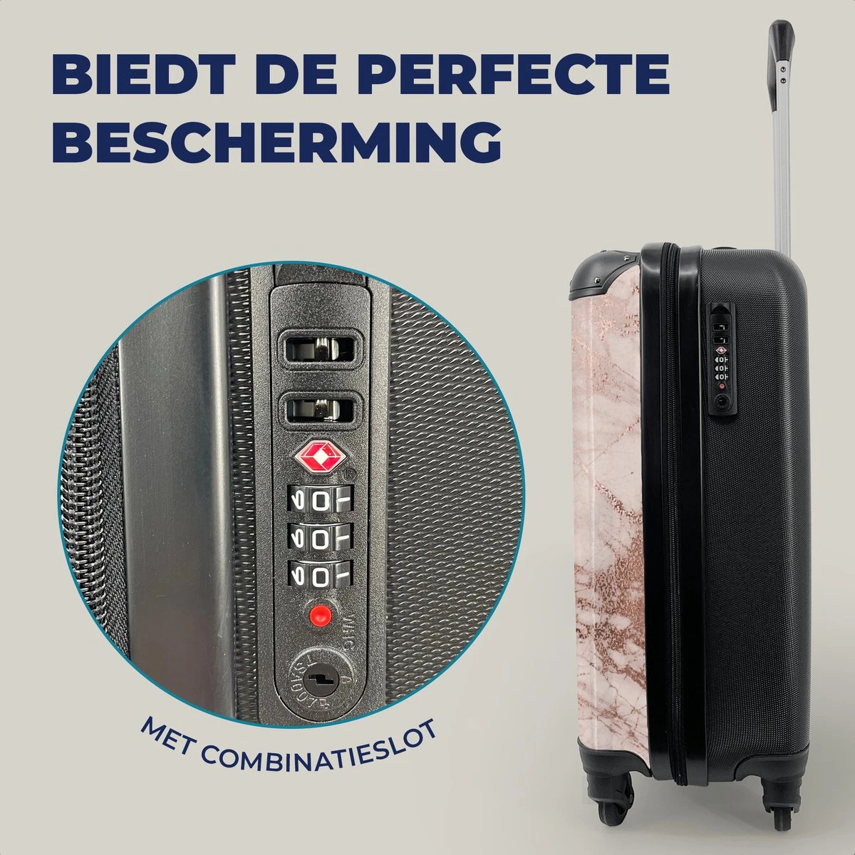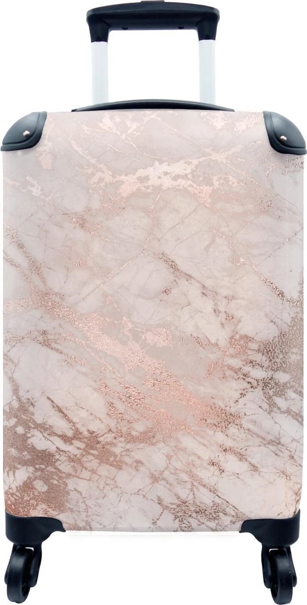 MuchoWow® Koffer – Marmer – Roze – Luxe – Marmerlook – Glitter – Design – Past Binnen 55x40x20 Cm En 55x35x25 Cm – Handbagage – Trolley – Fotokoffer – Cabin Size – Print