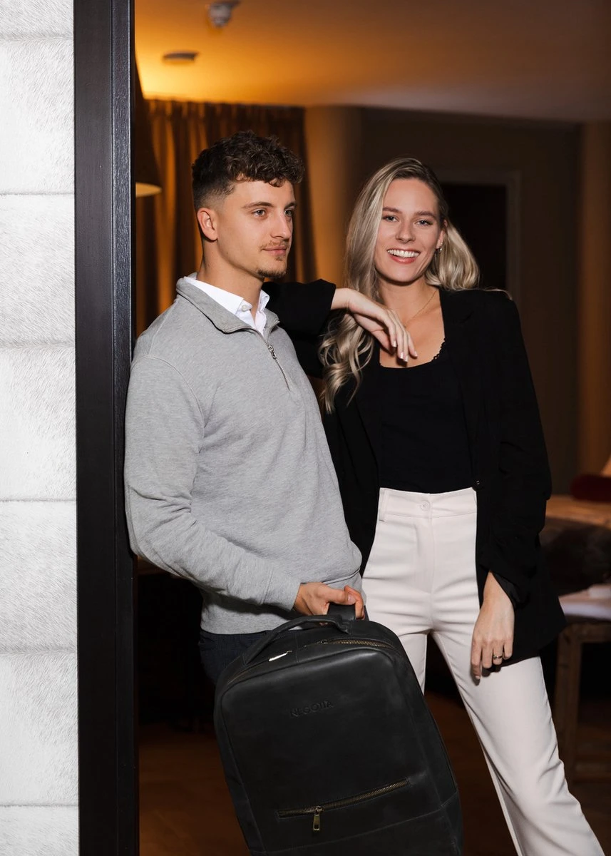 In deze leren Alpha rugzak kan je (bijna) alle laptops tot 15.6 inch opbergen. Vergelijk de afmetingen van onze rugzak met jouw laptop, zodat je zeker weet dat jouw laptop past. Wil je het honderd procent zeker weten? Neem dan vooral contact met ons op!