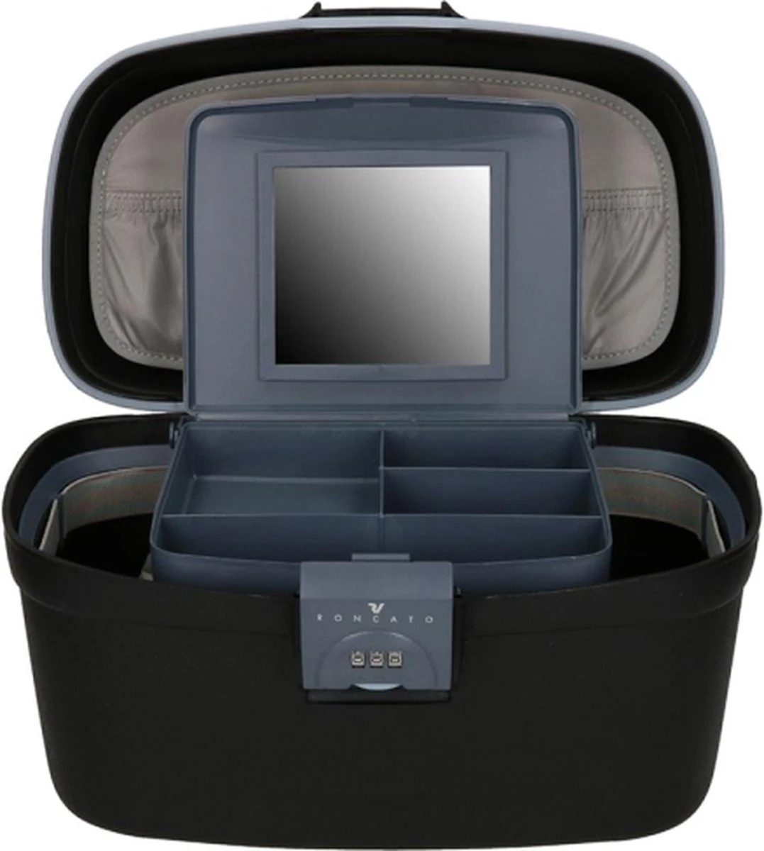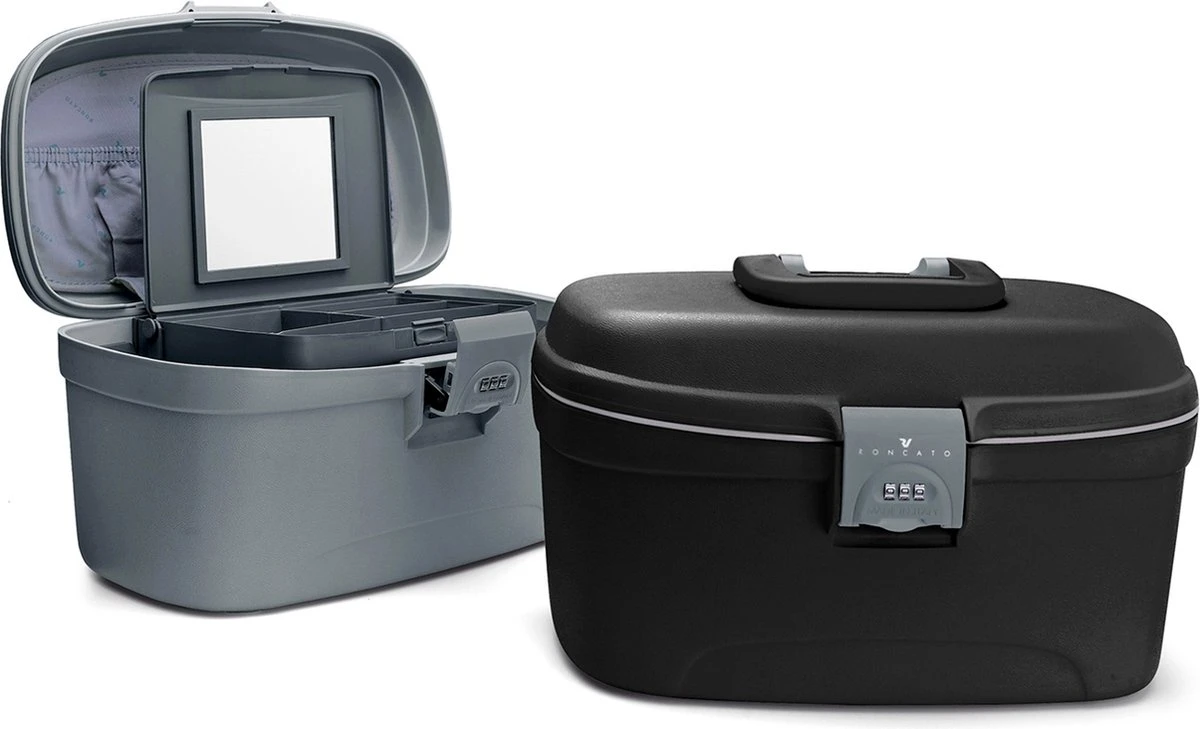 Iedere reiziger heeft wel een goeie beautycase nodig. Met de Light beautycase van Roncato in de kleur zwart weet je dat je in ieder geval goed zit! Aan ruimte in ieder geval geen gebrek want je kan letterlijk al je toiletspullen hierin kwijt. Het fijne aan deze beautycase is dat het een hard case is waardoor je ervan verzekerd bent dat je spullen onbeschadigd blijven en dat is natuurlijk heel belangrijk met toiletspullen. Mocht het in het ergste geval gaan lekken, ben je er in ieder geval zeker van dat het niet in je koffer terecht komt en kun je het makkelijk beperken tot je beautycase. Ook heel fijn voor door de bagagecheck want je kan nu al je vloeistoffen gemakkelijk in één keer uit je koffer halen. Het cijferslot geeft je extra zekerheid en dat is natuurlijk altijd fijn tijdens het reizen. De beautycase is niet alleen handig voor het reizen, maar ook ideaal voor thuis om al beautyproducten in op te bergen voor op je kaptafel.