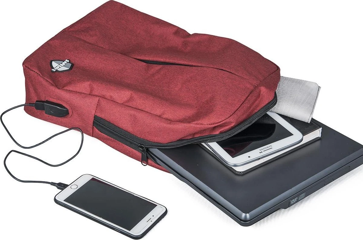 Neem je laptop veilig en gemakkelijk overal mee naartoe in deze SafeSave rugtas met laptopvak. De rugzak is geschikt voor een 15.6 inch laptop. Daarnaast heb je in een ander compartiment nog voldoende ruimte voor andere spullen. De tas beschikt over een USB aansluiting en een apart vak om deze aan te sluiten op een powerbank (niet inbegrepen). Dankzij deze handige feature, kun je altijd en overal je telefoon of tablet opladen.