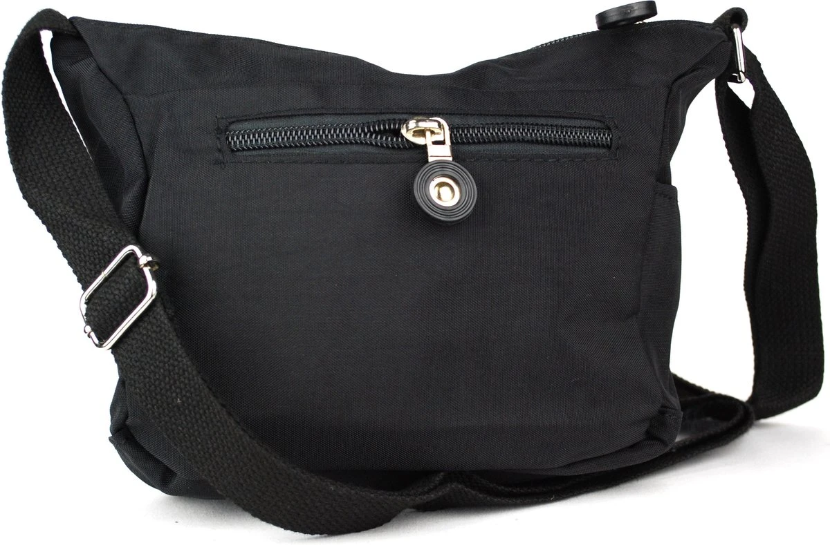 Reistas (klein) van krinkel Nylon, met 7 vakken en lange vaste draagriem (schouder) . Aan de voorkant 3 vakken waarvan 1 met ritssluiting .Deze zijn met klep afgesloten met klittenbandsluiting.Achterkant heeft 1 vak met ritssluiting.In het grootste middenvak zit nog een extra opbergvakje.Allen met ritssluiting.Mooi en goed afgewerkt compact reistasje met sterke ritssluitingen. Kleinste tasje uit de serie, ideaal als handbagage om te reizen (fietsen)of te wandelen. 1 jaar garantie